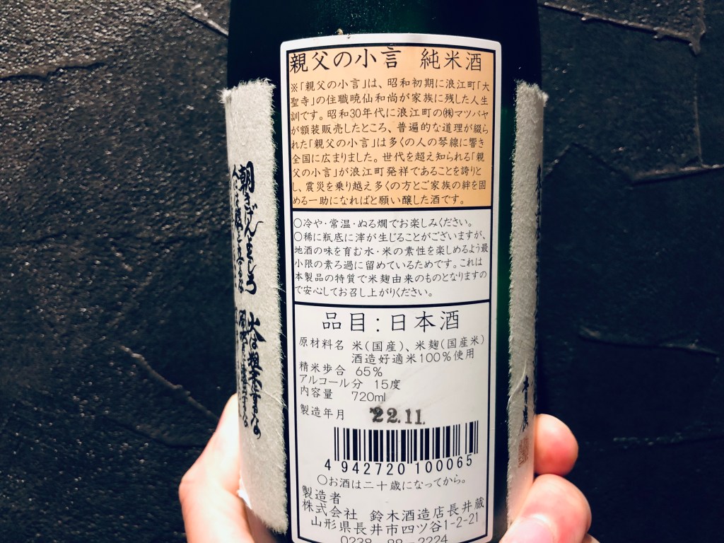 今回紹介するのは、山形県長井市、鈴木酒造店長井蔵さんの“親父の小言 純米酒”!!